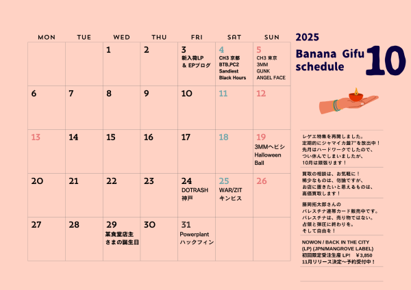 特集やブログ更新日&入荷情報などは、月間スケジュールをご確認いただけると幸いです。