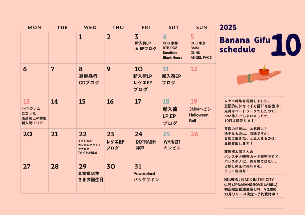 特集やブログ更新日&入荷情報などは、月間スケジュールをご確認いただけると幸いです。
