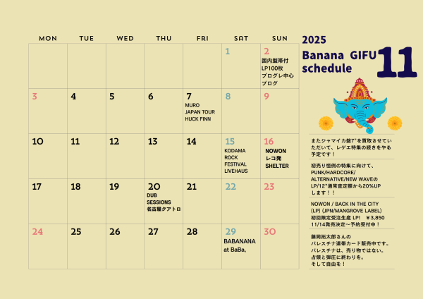 特集やブログ更新日&入荷情報などは、月間スケジュールをご確認いただけると幸いです。