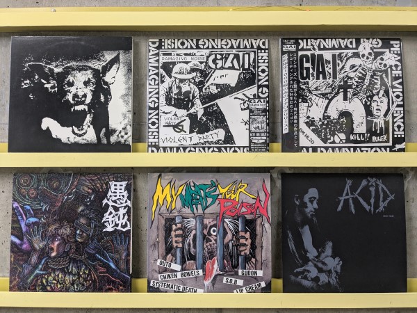 他にもかき集めて、少量ですが、The Executeの初期音源、後にSwankysとなる九州ノイズコア、GAIのカセットLPリイシュー、Bastard~Judgement のZigyakuさんやGUYさんが在籍した80's 広島ハードコア・レジェンド、愚鈍のディスコグラフィーLPリイシュー、東京ダークネス・メタリック・ノイズ・クラストHC、Acidの傑作1stもあります。