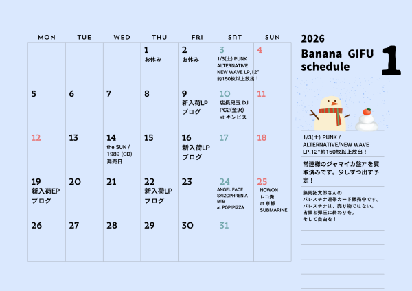 特集やブログ更新日&入荷情報などは、月間スケジュールをご確認いただけると幸いです。
