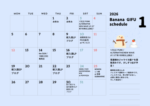 特集やブログ更新日&入荷情報などは、月間スケジュールをご確認いただけると幸いです。
