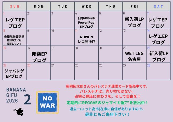 特集やブログ更新日&入荷情報などは、月間スケジュールをご確認いただけると幸いです。